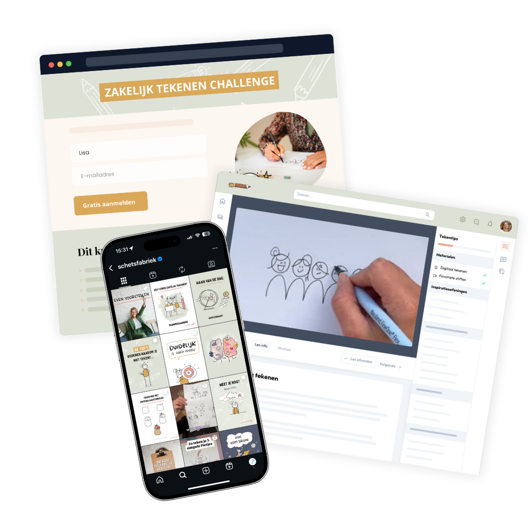Sinds Stefanie haar kennis online is gaan delen, is er iets bijzonders gebeurd: het online deel van Schetsfabriek groeide zo hard dat haar omzet nu bijna 50/50 verdeeld is tussen live opdrachten en online cursussen.